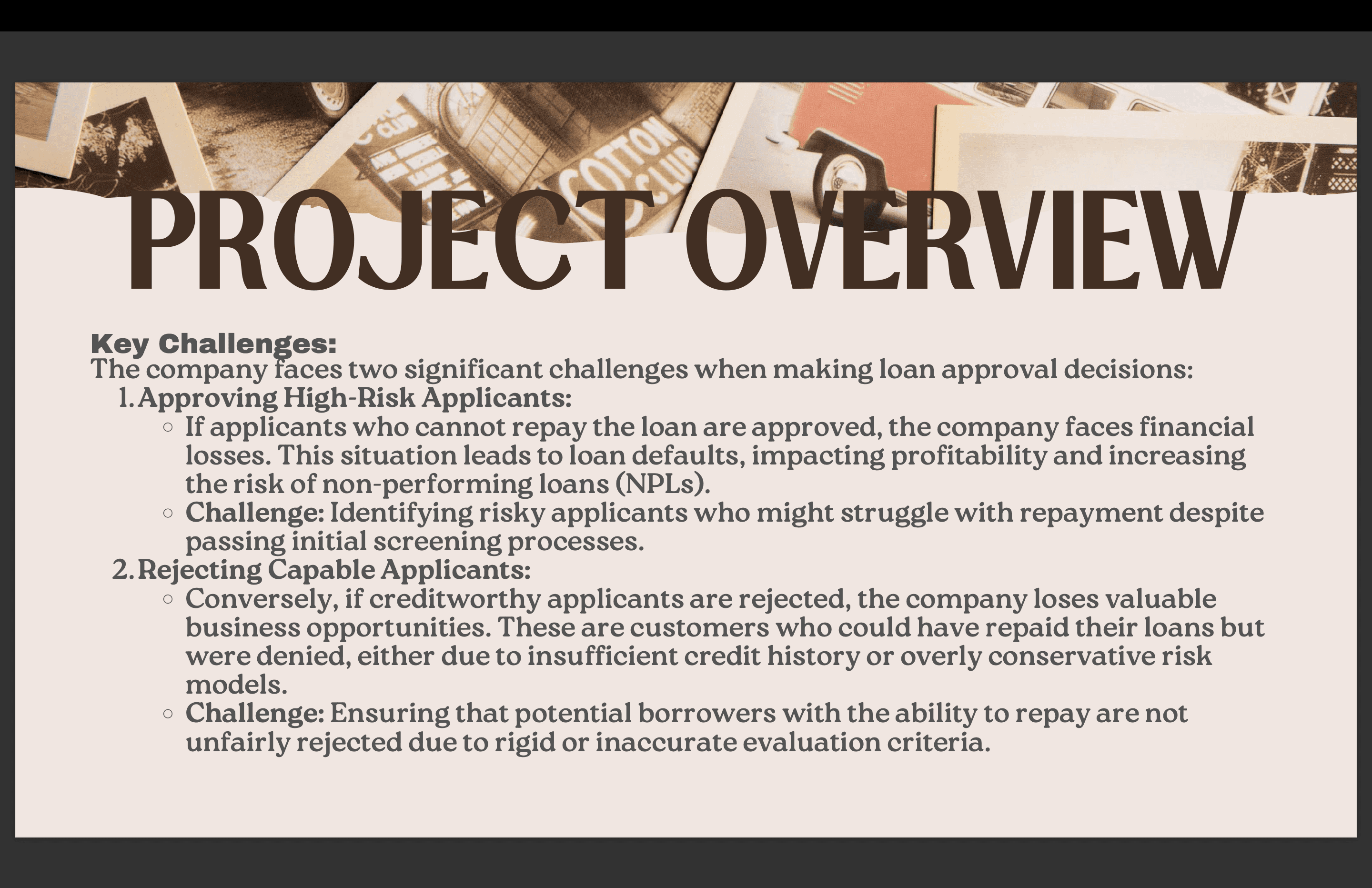 This project simulates real-world financial risk analysis by investigating customer data to prevent loan defaults. The insights aim to help lenders reduce financial losses while ensuring eligible applicants are not wrongly rejected.