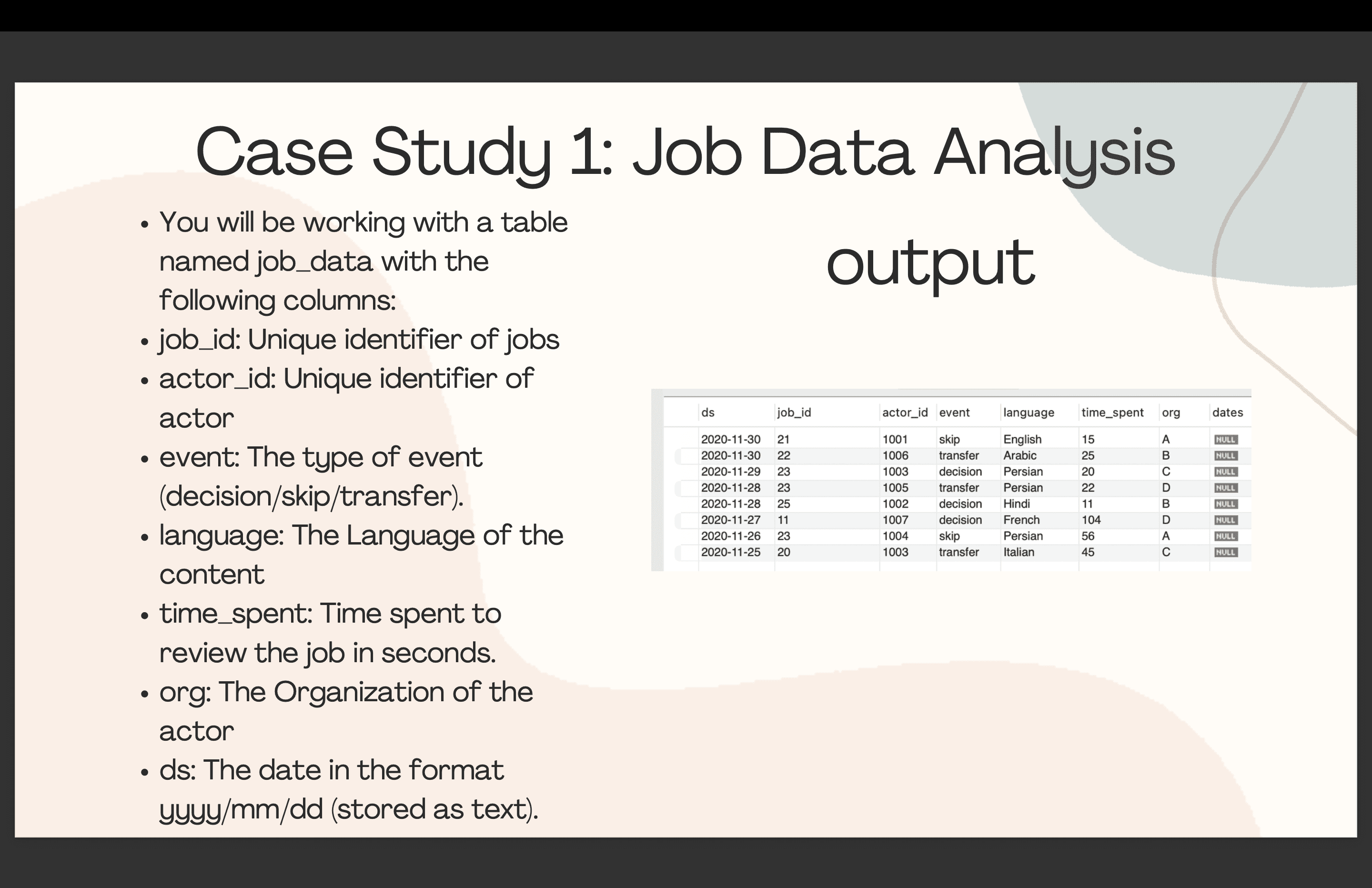 Executed deep-dive analysis using SQL on large-scale datasets to uncover patterns in job throughput, language distribution, and user engagement. Identified root causes of metric spikes through systematic investigation across events, user behavior, and email logs.